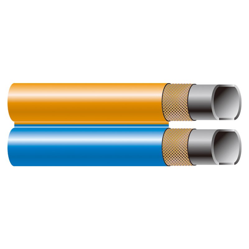蓝色软管,用于输送氧气的软管(含氧量> 20%),用于焊接和切割,用于使用保护气的电弧焊以及相关操作。 橙色软管,用于焊接和切割的液态气体(液化石油气)的软管软管。也适用于天然气以及丙炔和丙二胺混合气。